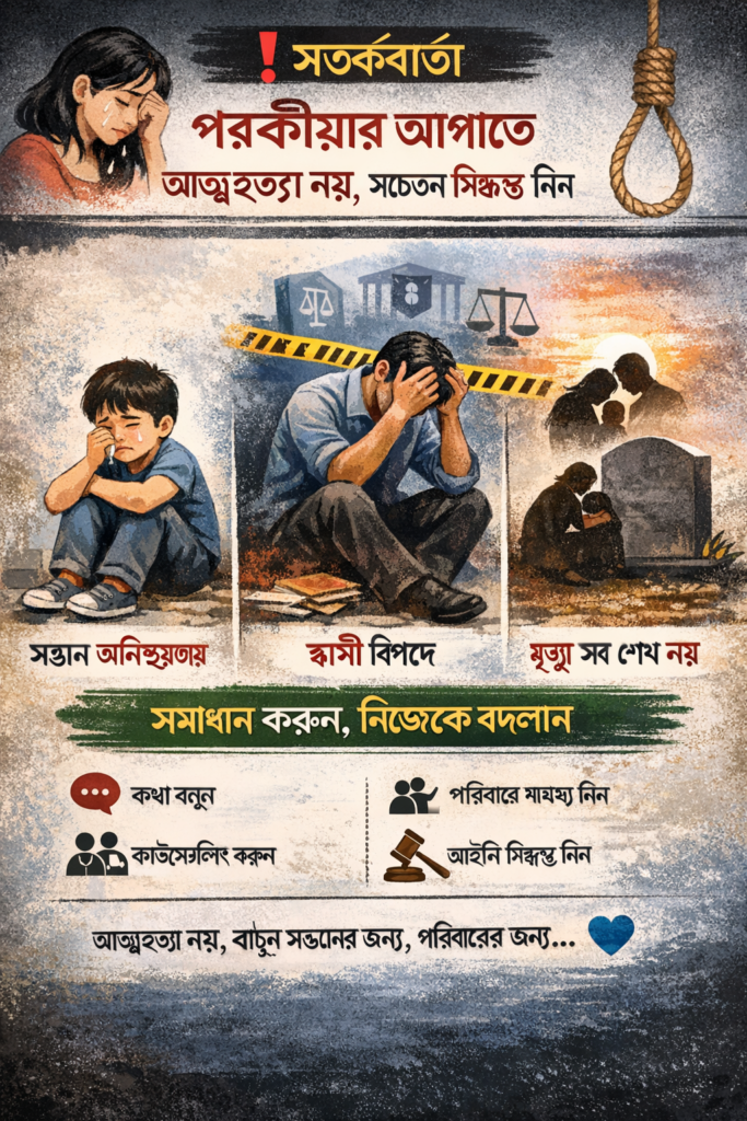 ✔ আইনি পথ খোলা আছে—সঠিক সিদ্ধান্ত নিন, কিন্তু নিজের জীবন শেষ করে নয়।
