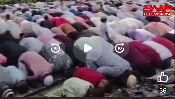 নামাজ শেষে পরস্পরের সঙ্গে কোলাকুলি করে ঈদের শুভেচ্ছা বিনিময় করেন মুসল্লিরা।8