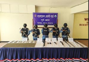 মিয়ানমার থেকে টেকনাফ সীমান্ত দিয়ে প্রবেশকালে কোস্টগার্ড ও পুলিশের টেকনাফ স্থলবন্দর সংলগ্ন পাহাড়ে যৌথ অভিযান চালিয়ে অস্ত্র কারবারিদের ফেলে যাওয়া